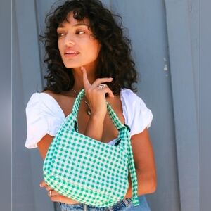 BAGGU Mini Nylon Shoulder Bag Green Gingham