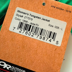 Durable ski jacket by Outdoor Research. Aqua and black design. GORE-TEX material for superior protection. Perfect for winter sports.