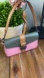 • Refined pink and green colorblock pebble leather with smooth leather accents