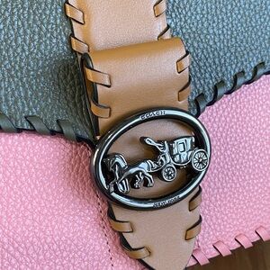 Elevate your everyday style with the Coach Georgie Whipstitch Colorblock Bag—a refined blend of classic craftsmanship and modern design. Made from a mix of pebble leather and smooth leather, this piece showcases bold colorblock panels accented with intricate whipstitch detailing for added texture and visual appeal. Whether you’re heading to brunch, a meeting, or an evening out, the Georgie offers both function and flair.