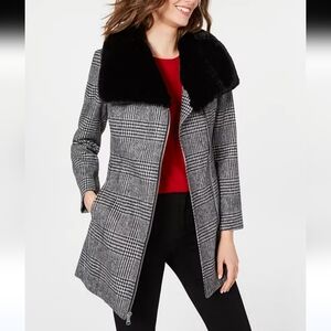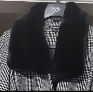 NWT INC International Plaid Black/ White Fur Collor Jacket sz L