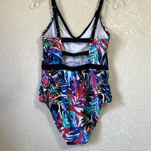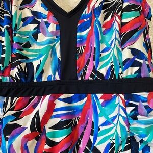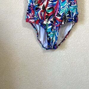 Jantzen women’s tropical V-neck one piece swimsuit multicolor leaf design Pre-owned in great condition Size 12 no longer has the size tag of size