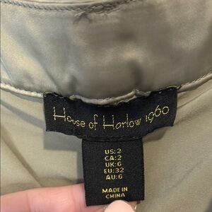 House of Harlow 1960 size 2 sage satin cargo pants. Has a small ink stain on bottom of one of the legs. See images. High quality. Feel very silky and comfy.