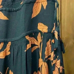 This stunning Thakoon maxi dress features a beautiful floral print in black and orange. The dress is made of lightweight chiffon fabric and has a deep. V-neckline with a pleaded and ruffle design. It also has adjustable features and is ruched for a stylish and comfortable fit. This dress is perfect for the summer and fall seasons and can be worn for multiple occasions. The garment instructions are to hand wash only. Items is new with tags. 1797 size 2 1799 size 8