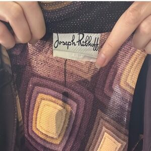 Vintage 90s Joseph Ribkoff Longline Geometric Jacket Retro Mod Print Sparkle L