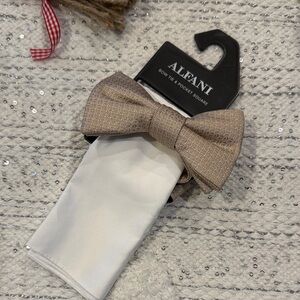 Alfani Beige Bow Tie and White Pocket Square Set