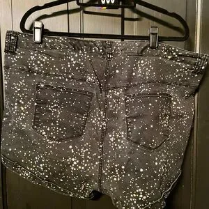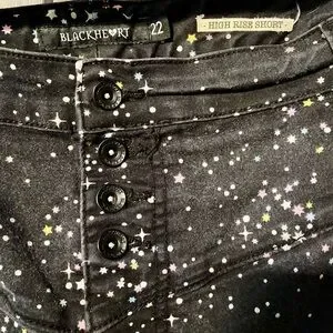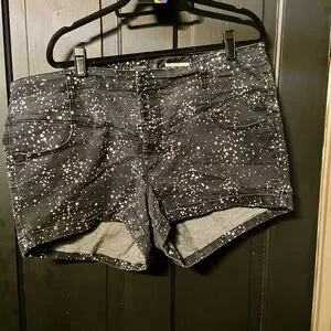 Chic black jean shorts with a starry design. Ideal for casual wear.