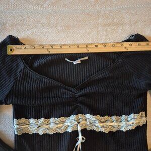 Urban Outfitters Kimchi Blue Women's Large Crop Top Lace Detail Whimsigoth Flirty Dark Coquette Soft Feminine