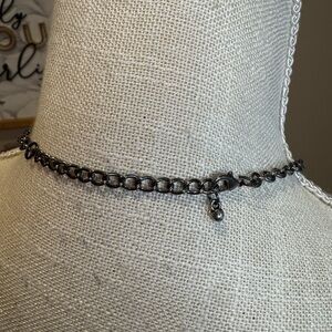 This stunning bib necklace features vibrant red beads, perfect for adding a pop of color to any outfit. The beads have a faceted shape creating lots of sparkles. Gunmetal silver chain with adjustable back closure.