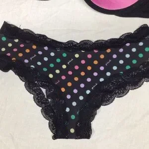 Chic black lace design. Comfortable fit. Ideal for daily wear.look at pics comes with free pink Polka dot lg bottoms see pics