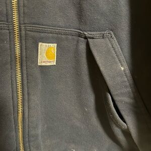 Carhartt Men’s Blue Loose Fit full Zip Jacket. Jacket does have some piling and wear as shown in the pictures. Other than that it is still in good condition and a heavy duty coat.