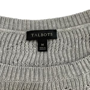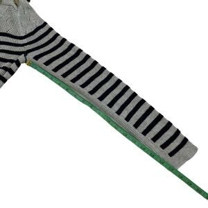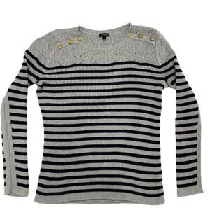 TALBOTS Gray Navy Blue Stripe Button Shoulder Pullover Sweater Size Medium Women