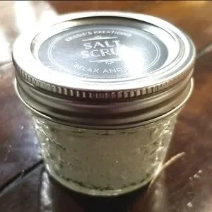 4 oz salt scrub includes organic, exfoliating salts, fractionated coconut oil and olive oil.