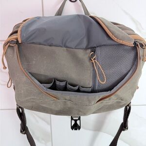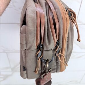 * has upgraded shoulder sling from Will Leathe Goods. The original nylon one had no pad and honestly not a good strap. I used this for work when I travel but having to take more international trips and switched to a full time backpack for more clothes. Great bag. Loved it. Minor scuffs but it’s waxed canvas so just makes it look good