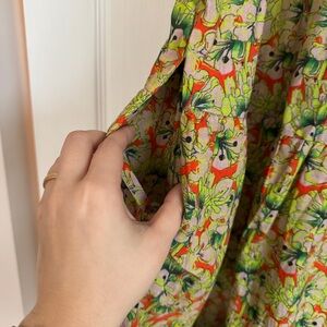 Embrace elegance with this stunning floral print dress. Perfect for any occasion, it features a vibrant design that stands out. In excellent condition. No flaws. Measurements in the photos. Smoke and pet free home.