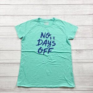 Aqua blue green short sleeve loose fit Heatgear shirt with “no days off” graphic