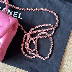CHANEL 23P Pink Mini Flap Bag Top Handle Gold Hardware NWT RARE