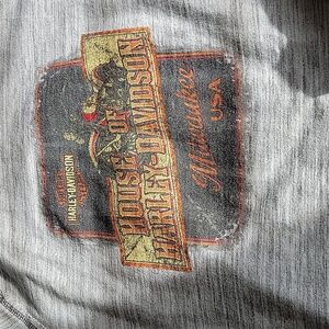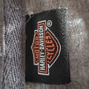Light gray hoodie featuring Harley-Davidson logo. Includes front pockets and a drawstring hood.