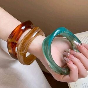 NWOT!! Stylish set of three resin bangles. Features vibrant colors: teal, amber, and orange. Perfect for adding a pop of color to any outfit.