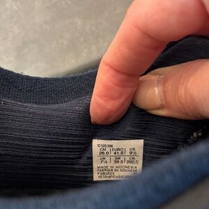 Sleek navy sneakers with pink accents. Lightweight and comfortable. Ideal for running and casual wear.