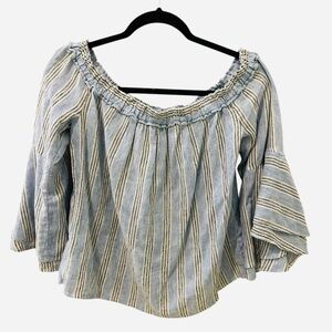 Lucky Brand off the shoulder striped tiered flutter sleeve blouse top Small