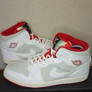 Men's Size 15 Jordan 1 Mid Hare 2015 White and Red Sneakers