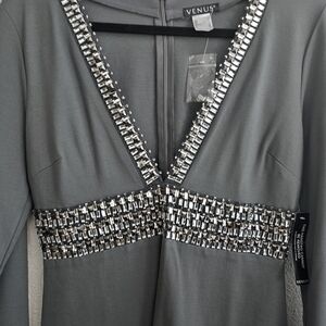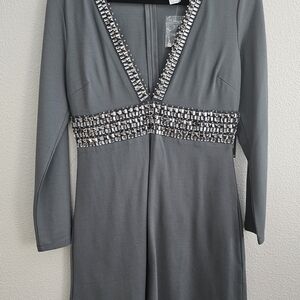 VENUS NWT Dress 8 Gray Long Sleeve Plunge Babydoll