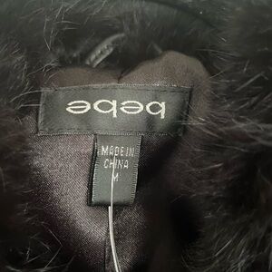 Bebe Black Zip Front Leather Rabbit Fur Coat NWT Medium