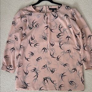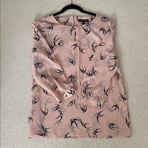 Chic blush pink blouse with a striking black pattern. Perfect for versatile styling. Soft and comfortable fabric.