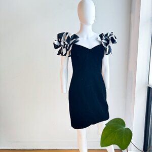 Vintage Y2k Beverly Hills 90210 A.J Bari Black velvet Ruffle Shoulder Dress S