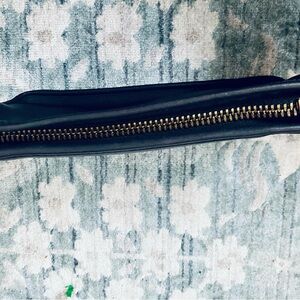 Vintage 90’s Coach navy leather wristlet. Has hardware for crossbody strap. Measures 11” x 7” x 2-1/2”. Gorgeous leather, near perfect condition. Dark navy blue.