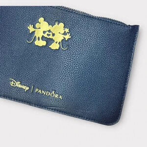 New PANDORA x Disney Mickey & Minnie Mouse Gold Navy Blue Wristlet Pouch Magical