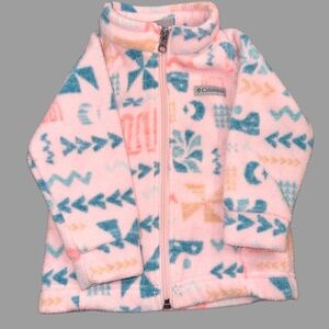 Columbia Baby Fleece Jacket Bundle | 12–18M | Pink & Teal Geometric | Like New