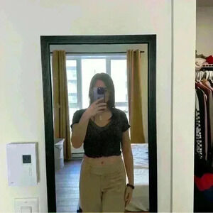 Urban Outfitters | womens small leopard print crop top with ruffles and buttons