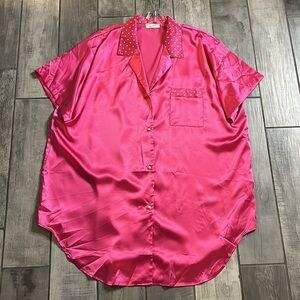 Vintage Arnold Scaasi Barbie Pink pearl button short sleeve shirt dress plus 1X