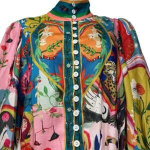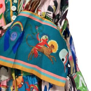 Women's Boho Graffiti Long Puff Sleeve Summer Dress Size M