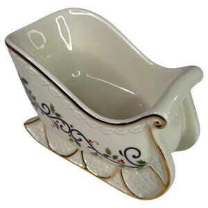 New Mikasa Fine Porcelain Holly Sleigh Centerpiece Bowl KT410 Christmas Decor