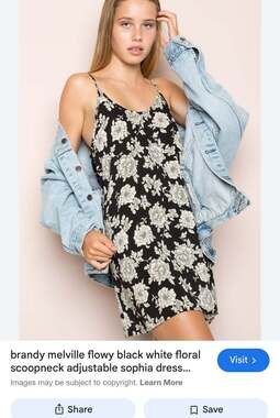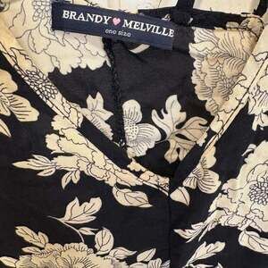Brandy Melville Black White Floral Scoopneck Adjustable Sophia Dress. This charming Sophia dress features a beautiful black and white floral pattern, a flattering scoopneck, and adjustable spaghetti straps for a perfect fit. Made from a lightweight, flowy fabric, it's ideal for casual outings or layering. Excellent pre-owned condition, with no visible flaws or signs of wear. A classic Brandy Melville style, perfect for warm weather or for adding a touch of floral elegance to any wardrobe. Sold out online.