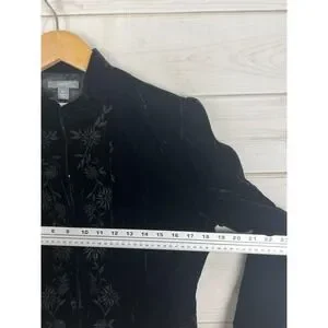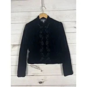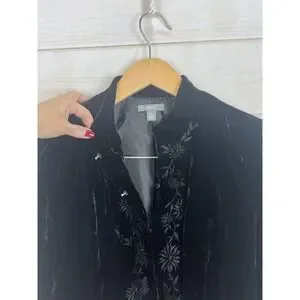 Apt 9 Jacket Womens 10 Black Velvet Floral Embroidered Hook Eye Party Formal