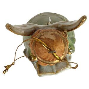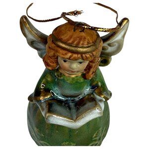 Ceramic Angel Bell figurine Christmas Ornament Green Dress Gold Accents VTG