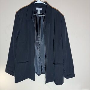 Chic black blazer by Sag Harbor. Features a classic design with a zip front. Ideal for professional or casual wear. 24W. Excellent condition