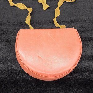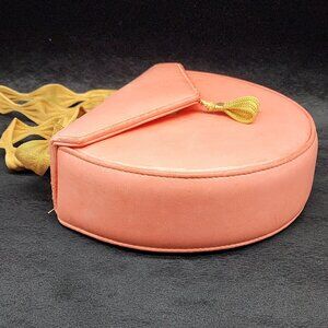Pink Salmon Leather Bag Gold Mesh Strap Small Hard Case Sondra Robert Vintage