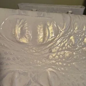This stylish white tote bag features a sophisticated crocodile-embossed design. Perfect for any occasion, it combines elegance with functionality.