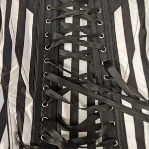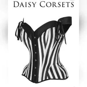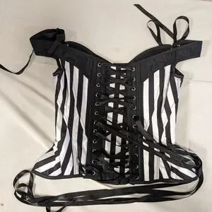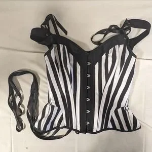 Top Drawer by Daisy Corsets-Black & White Striped Steel Bond Corset Size Medium