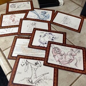 Portfolio of Nine Character Portrait Lithographs — limited-edition prints showcasing original animator sketches of Simba, Mufasa, Timon, Pumbaa, Rafiki, Zazu, Nala...