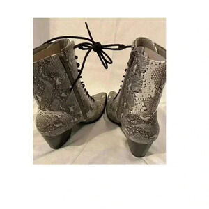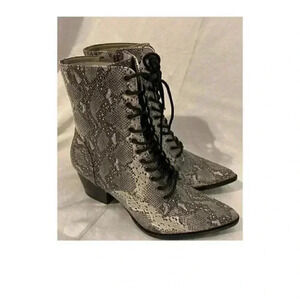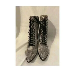 Step out in these vintage-inspired croc patterned ankle boots featured in vegan leather with a lace-up front and pointed toe.