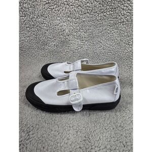 The VANS Style 93 Coated Canvas True White Mary Jane Sneakers Shoes in women's size 8.5 are a stylish and versatile option for everyday wear. Featuring a low-top sneaker style with a buckle closure, these shoes are perfect for activewear, casual outings, or workwear. Made with a blend of fabrics and a rubber outsole, they offer comfort and breathability, making them suitable for all seasons. The white color and logo accents add a touch of fun and skateboarding-inspired flair to the overall design. Perfect for women who appreciate both style and functionality in their footwear.