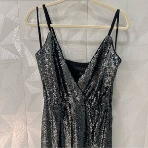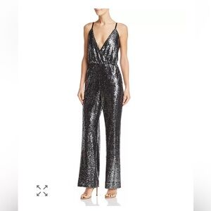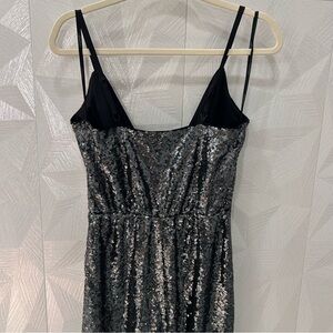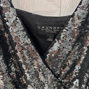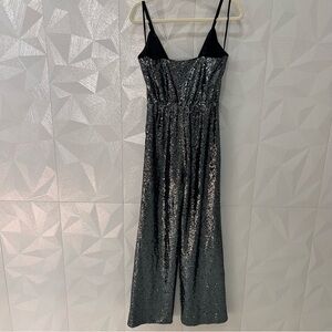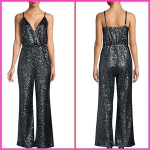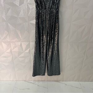 $228 LAUNDRY BY SHELLI SEGAL Sz2 WIDE-LEG ALLOVER SEQUINED JUMPSUIT BLACK Gray