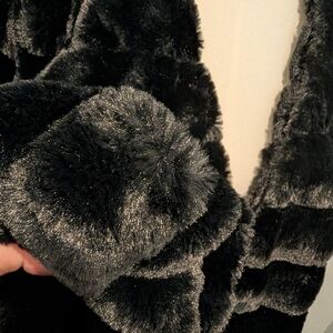 Elevate your style with this chic black teddy jacket. Perfect for adding warmth and elegance to any outfit. Super soft, has pockets.