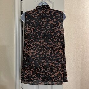 CAbi "9-To-5" Sleeveless Blouse in Mauve/Grey/Black Camo-Like Print #3075